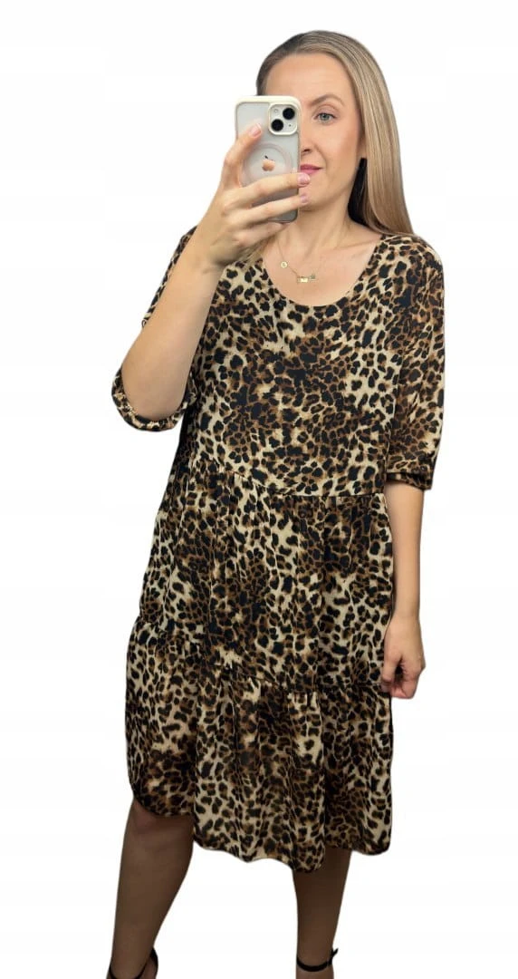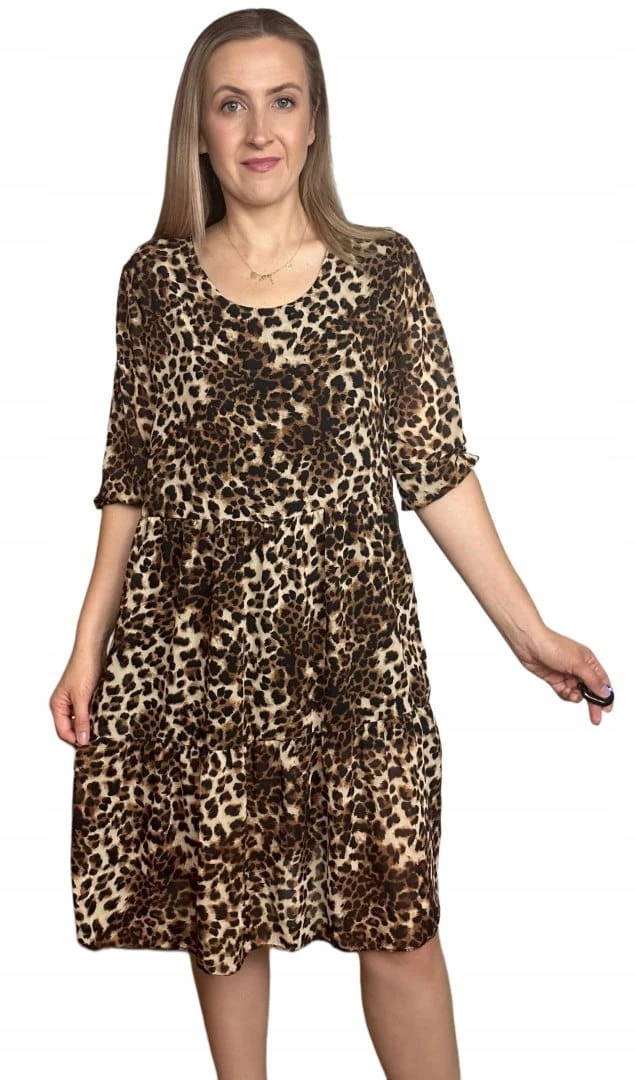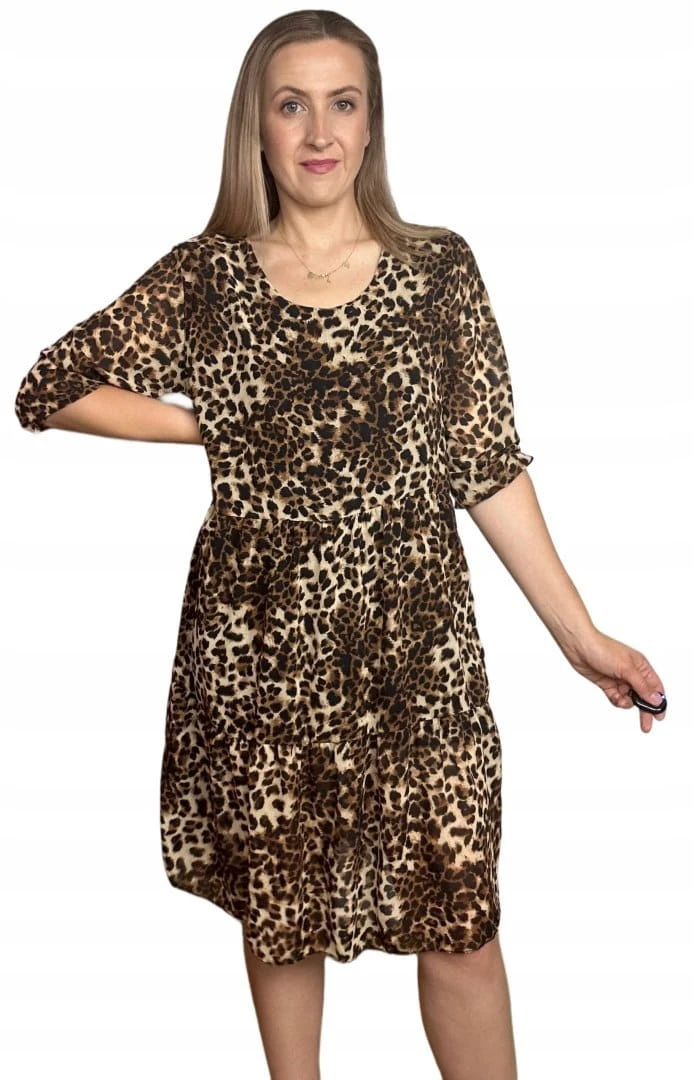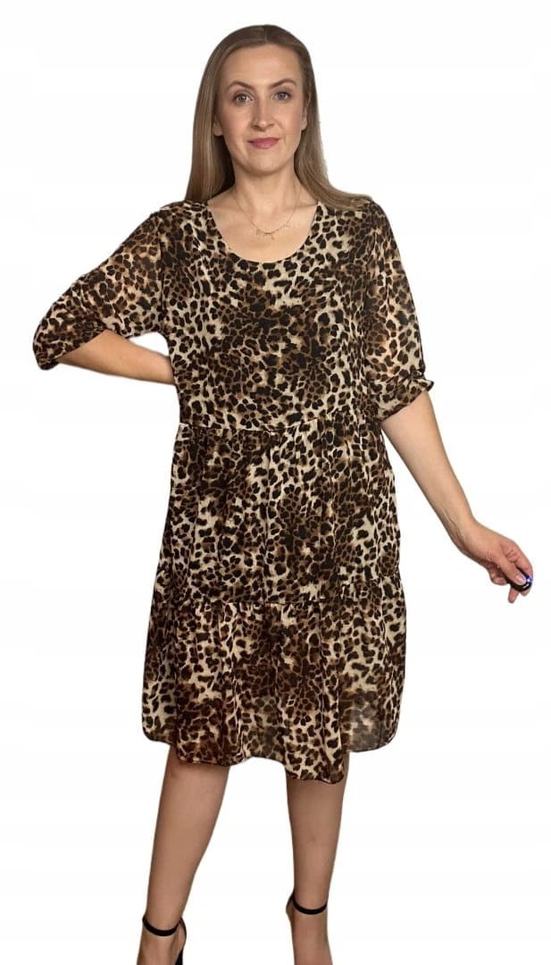 Luźna sukienka szyfonowa w panterkę cętki rękawek szyfon krótka S M L