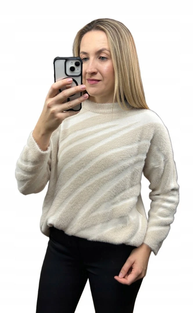 Miękki wzorzysty sweterek oversize luźny zebra wiskoza wełna