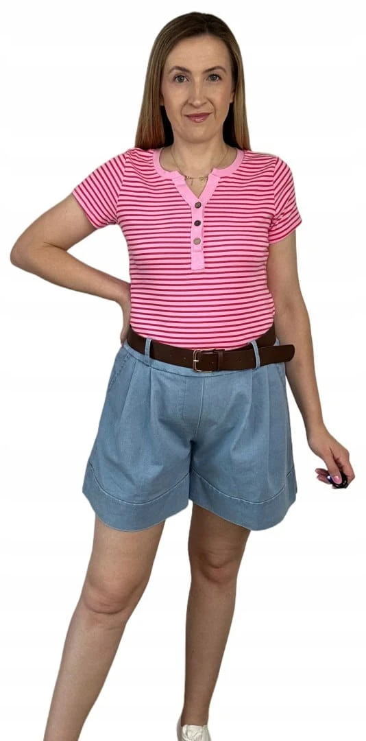 Niebieskie bawełniane szorty spodenki szerokie nogawki z paskiem Livan's