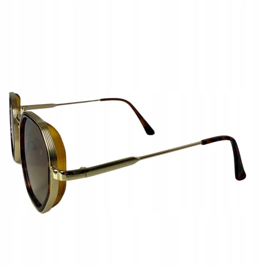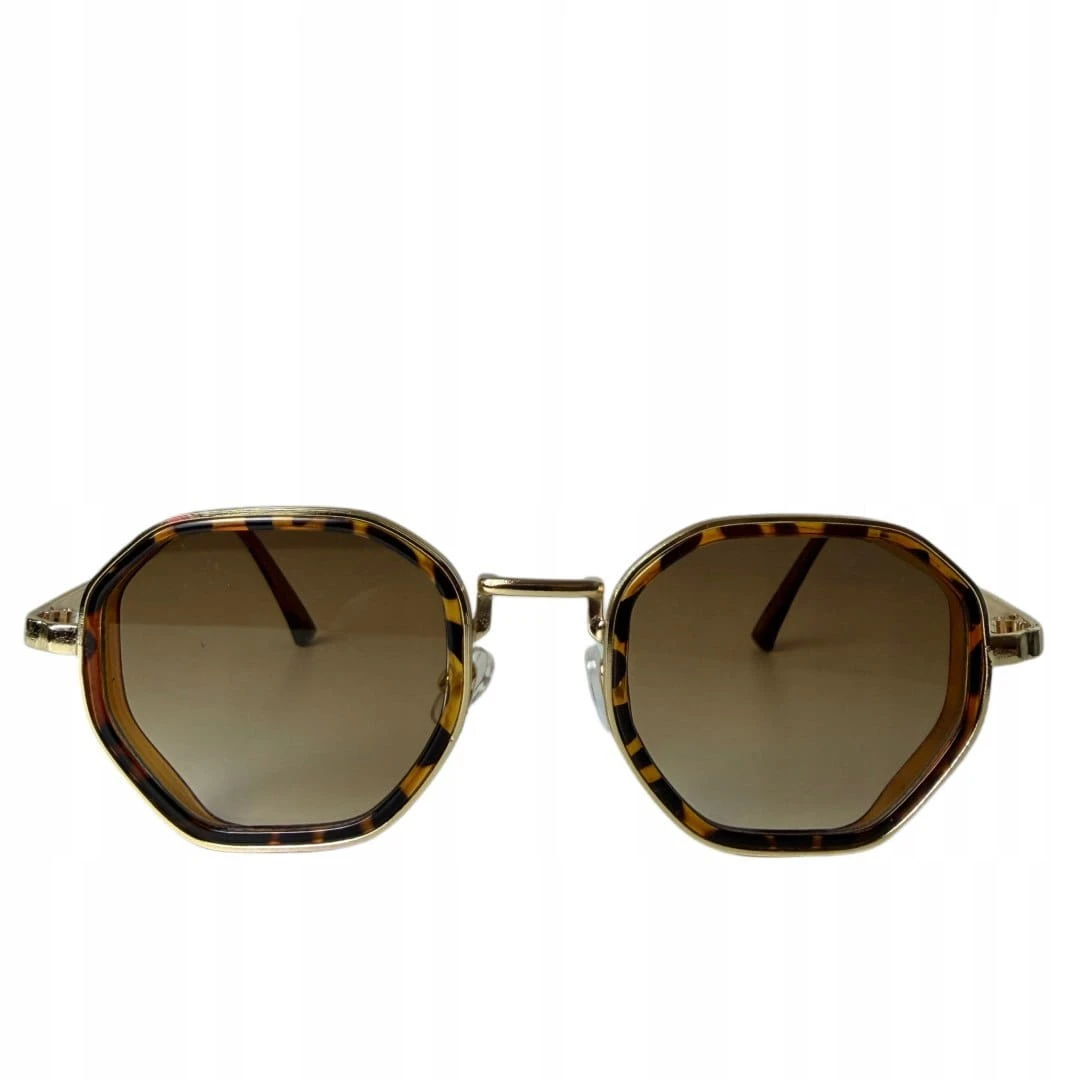 Okulary przeciwsłoneczne geometryczne brązowe panterka metalowa oprawa