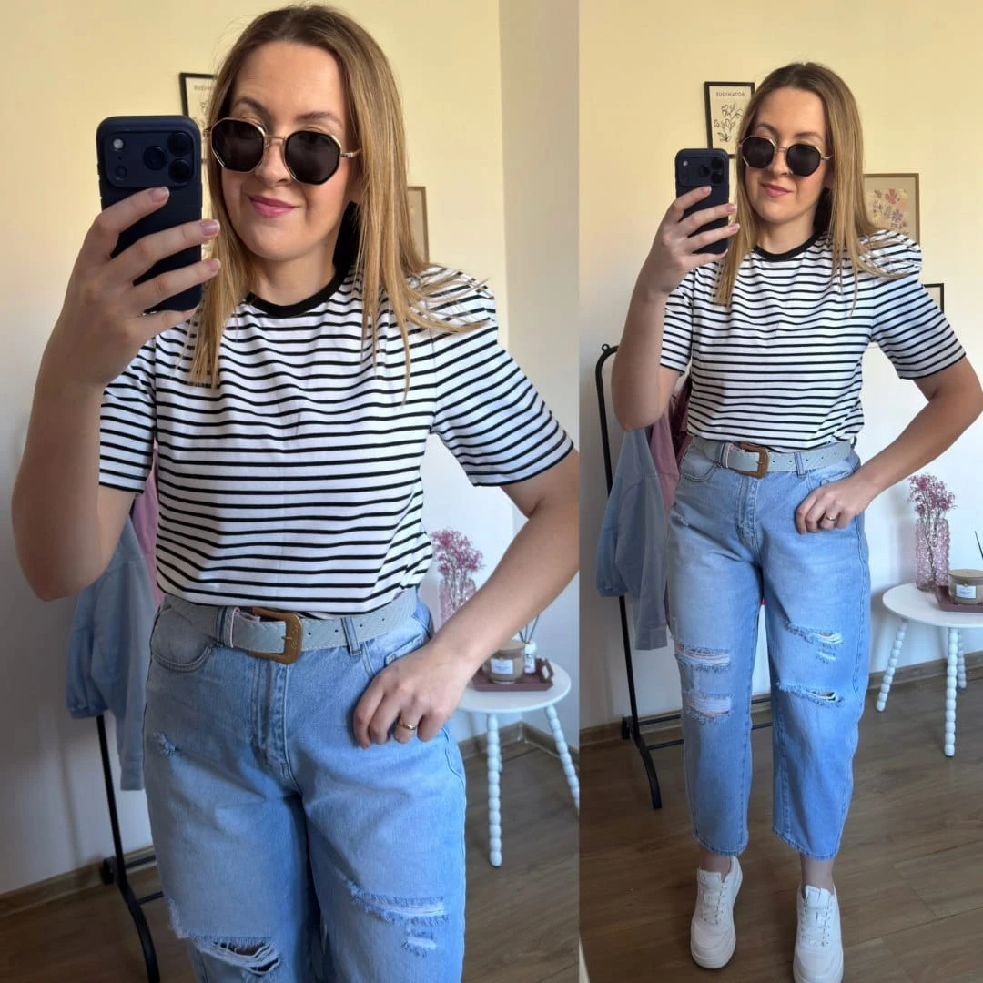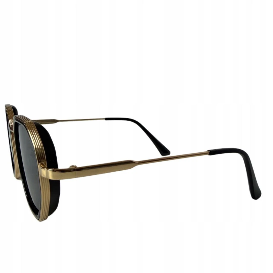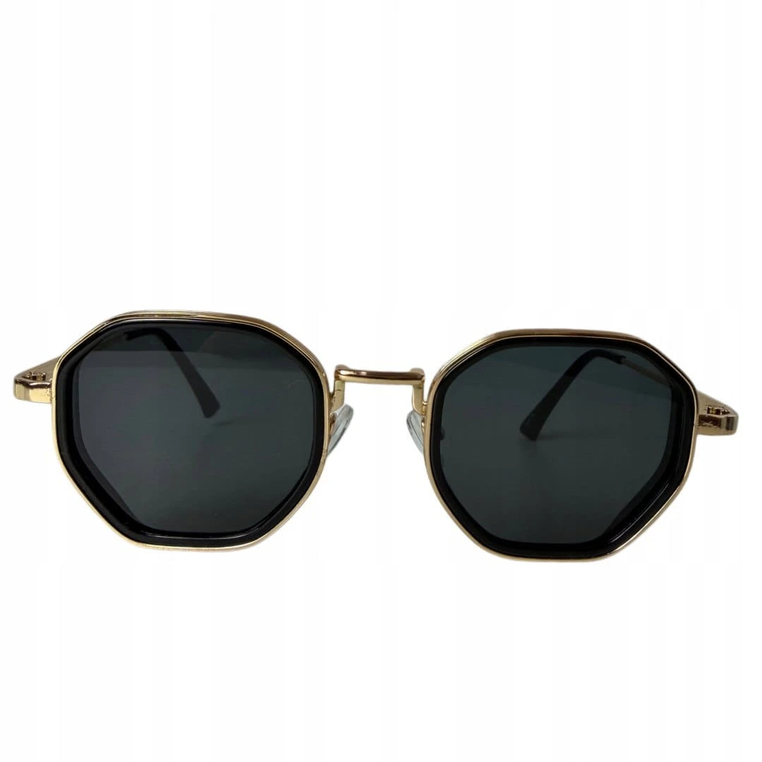 Stylowe okulary przeciwsłoneczne w modnym, geometrycznym kształcie. Złota metalowa oprawa połączona z czarnym wykończeniem nadaje im elegancki i ponadczasowy charakter. Model świetnie uzupełni wiosenne i letnie stylizacje – zarówno casualowe, jak i bardziej eleganckie.