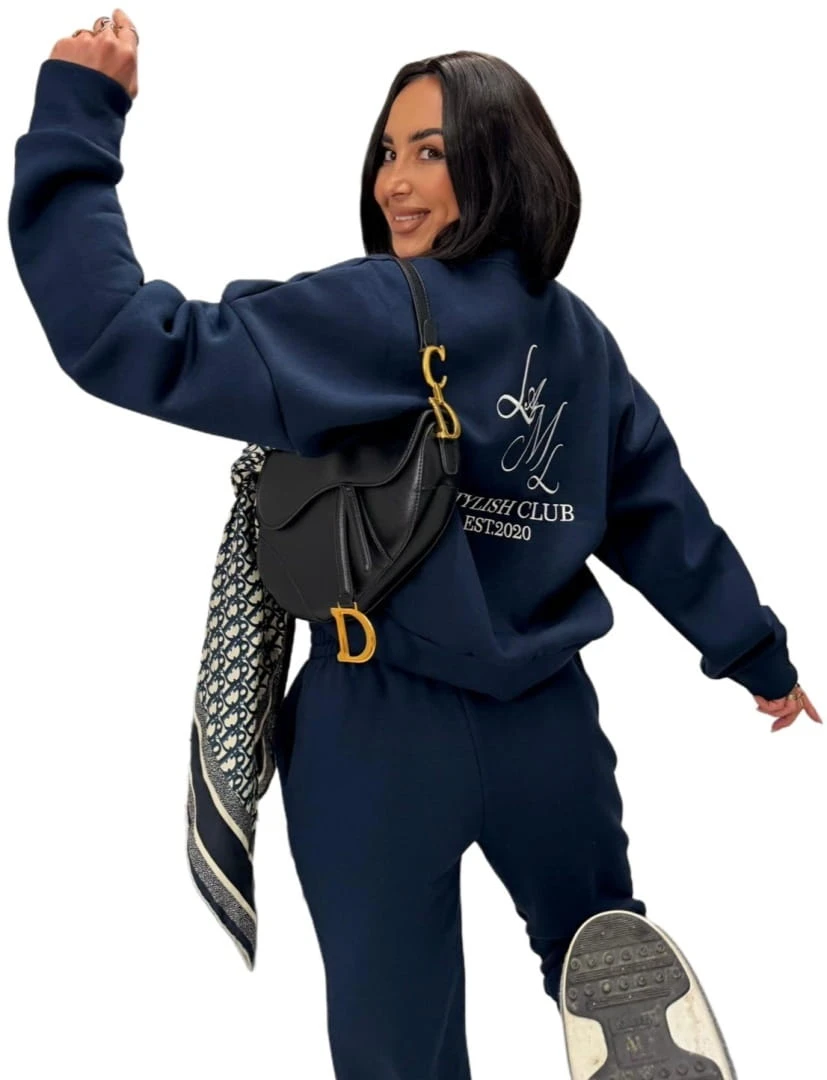 Oversize bluza bawełniana ocieplana haft granatowa bawełna La Milla- STYLISH CLUB