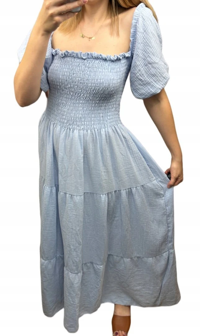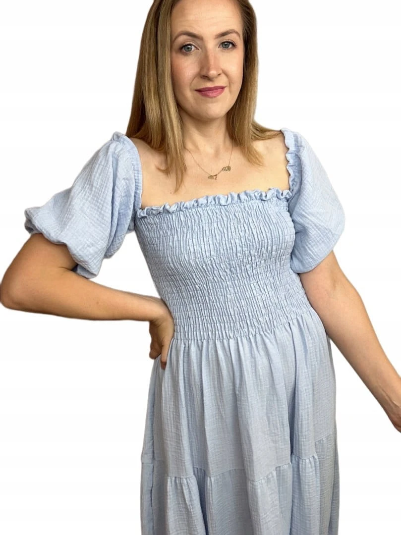 Piękna muślinowa muślin bawełna maxi długa hiszpanka luźna rękawki M L XL
