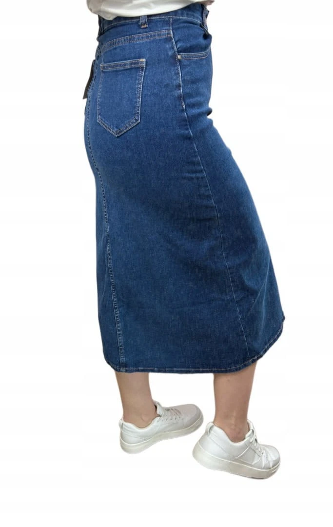 Spódnica jeansowa trapezowa midi dłuższa wysoki stan Mila Premium Jeans S