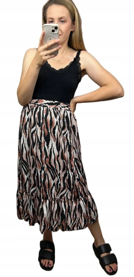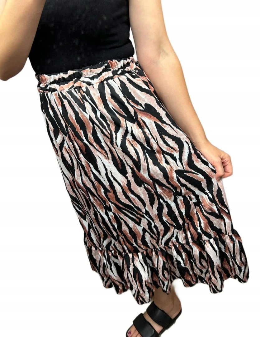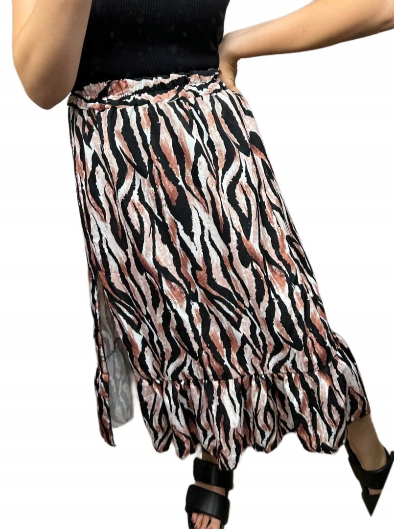 Spódnica midi dłuższa z rozcięciem falbanka w cętki panterkę S M L