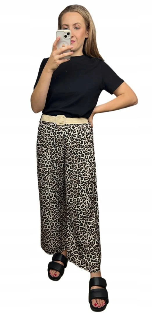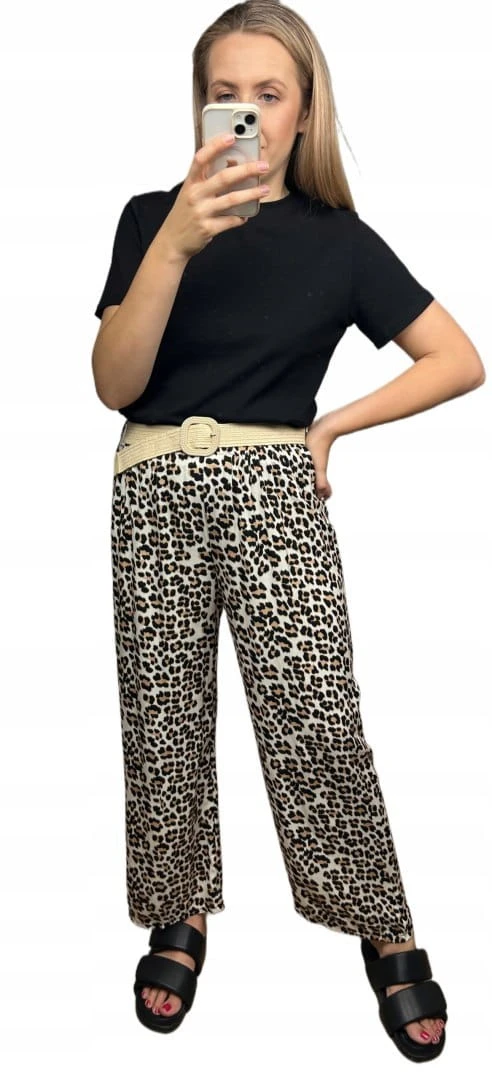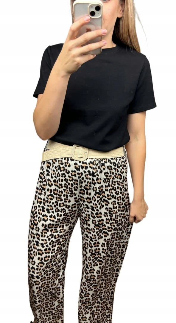 Spodnie szeroka nogawka wiskozowe wiskoza cętki panterka pasek S M L