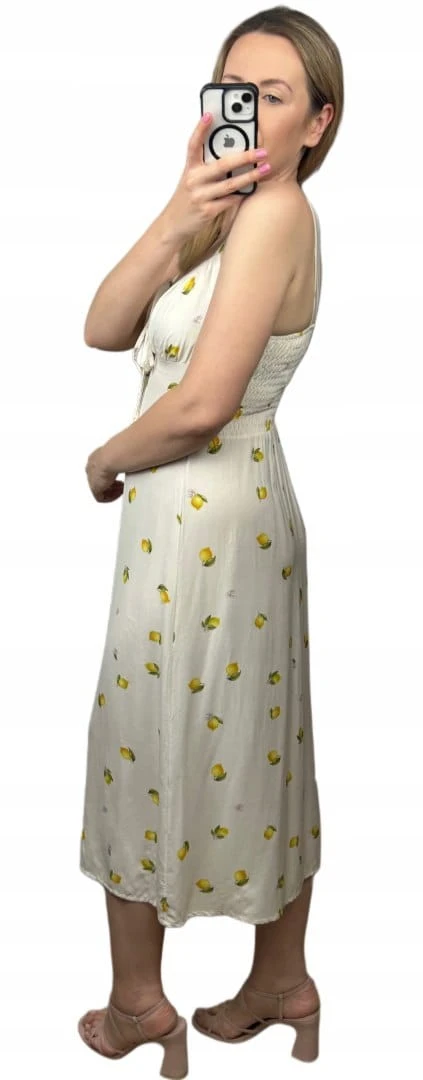 Sukienka w cytryny lemon ramiączkach rozcięcie śmietanka 100% wiskoza midi