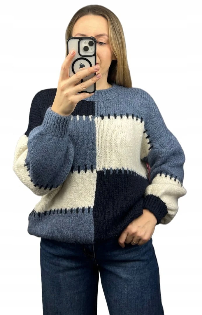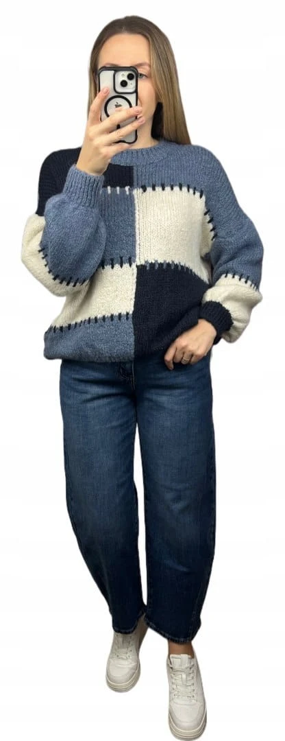 Miękki, ciepły sweter o wyjątkowym, patchworkowym wzorze