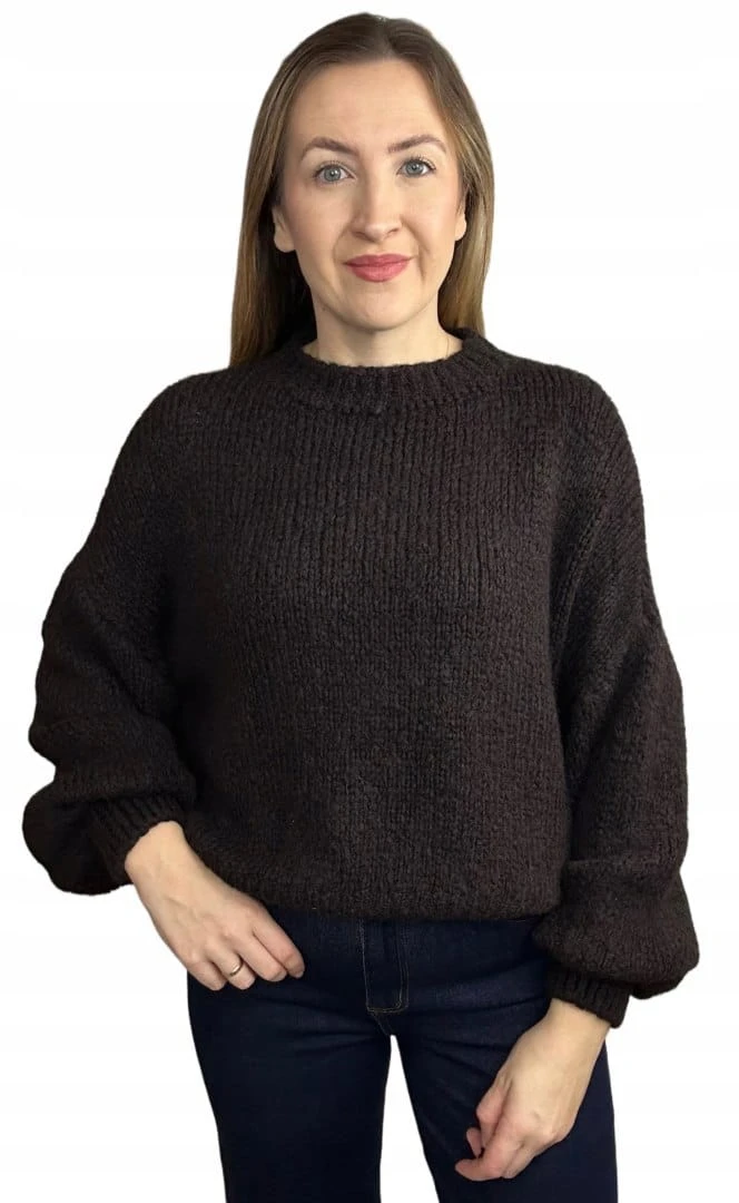 Sweter oversize czekoladowy bufiaste rękawy chmurka 12% kid moher wełna- CLOUDY