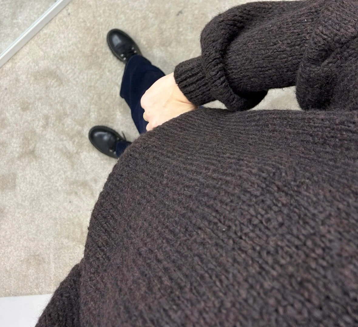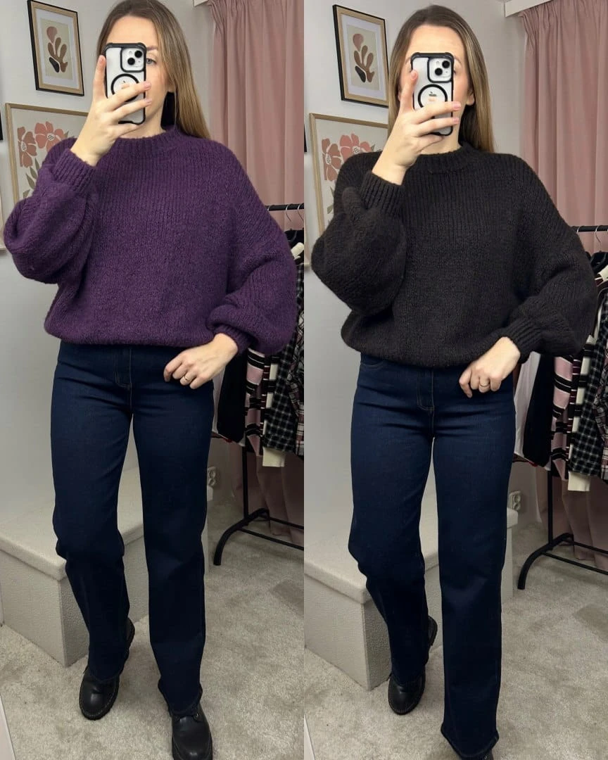Sweter pięknie układa się na sylwetce, ma przyjemną w dotyku fakturę i delikatnie „chmurkowy” meszek. Idealny do jeansów, spódnic i spodni typu wide leg — stworzysz z nim zarówno codzienne, jak i bardziej eleganckie zestawy. To model, który pokochałyście za uniwersalność i wyjątkową miękkość.