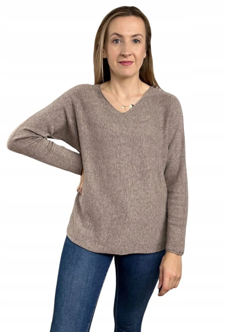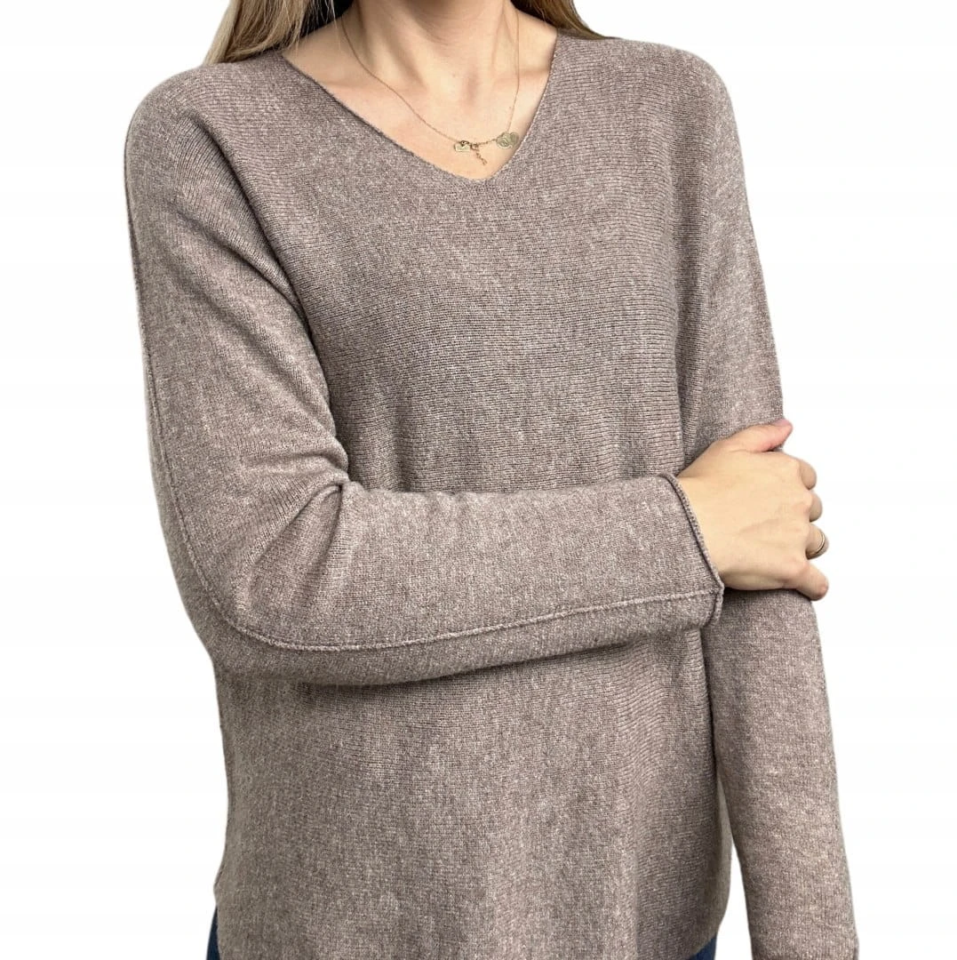 Sweterek wiskoza dekolt V miękki luźny jesień S M L XL