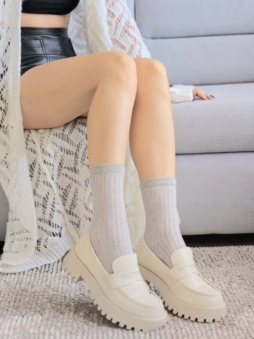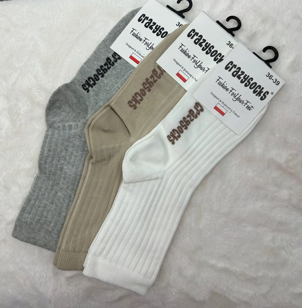 Klasyczne prążkowane skarpety damskie wykonane z wysokiej jakości bawełny z płaskim szwem. Idealnie przylegają do stopy.