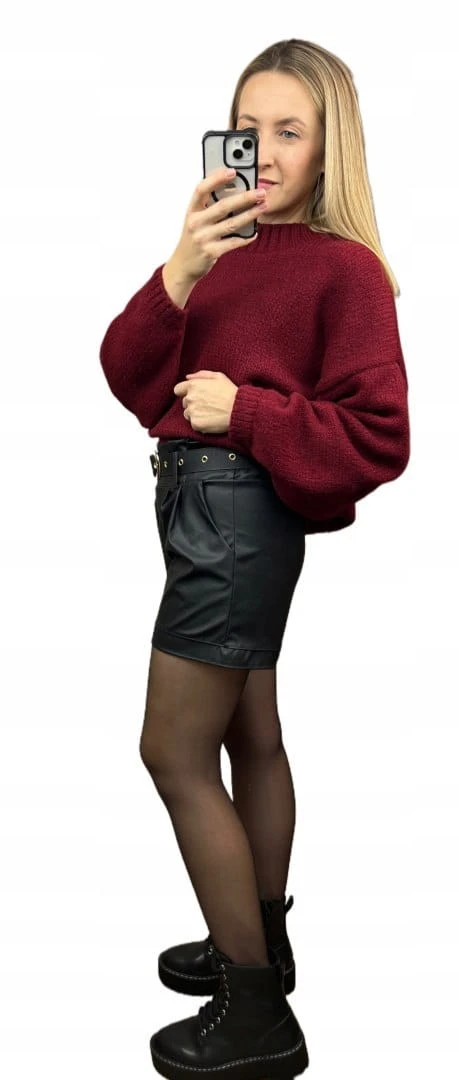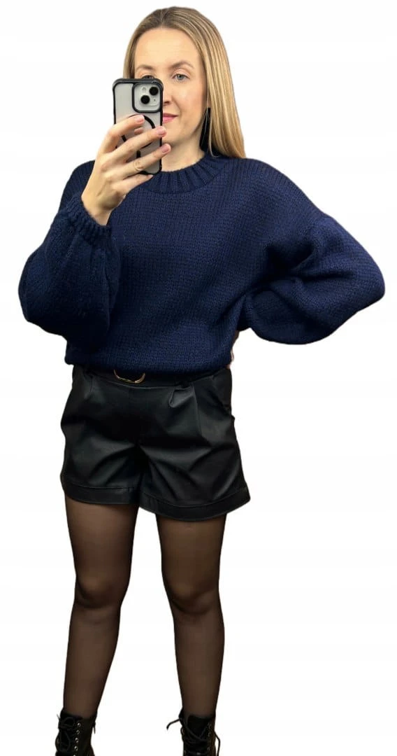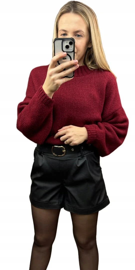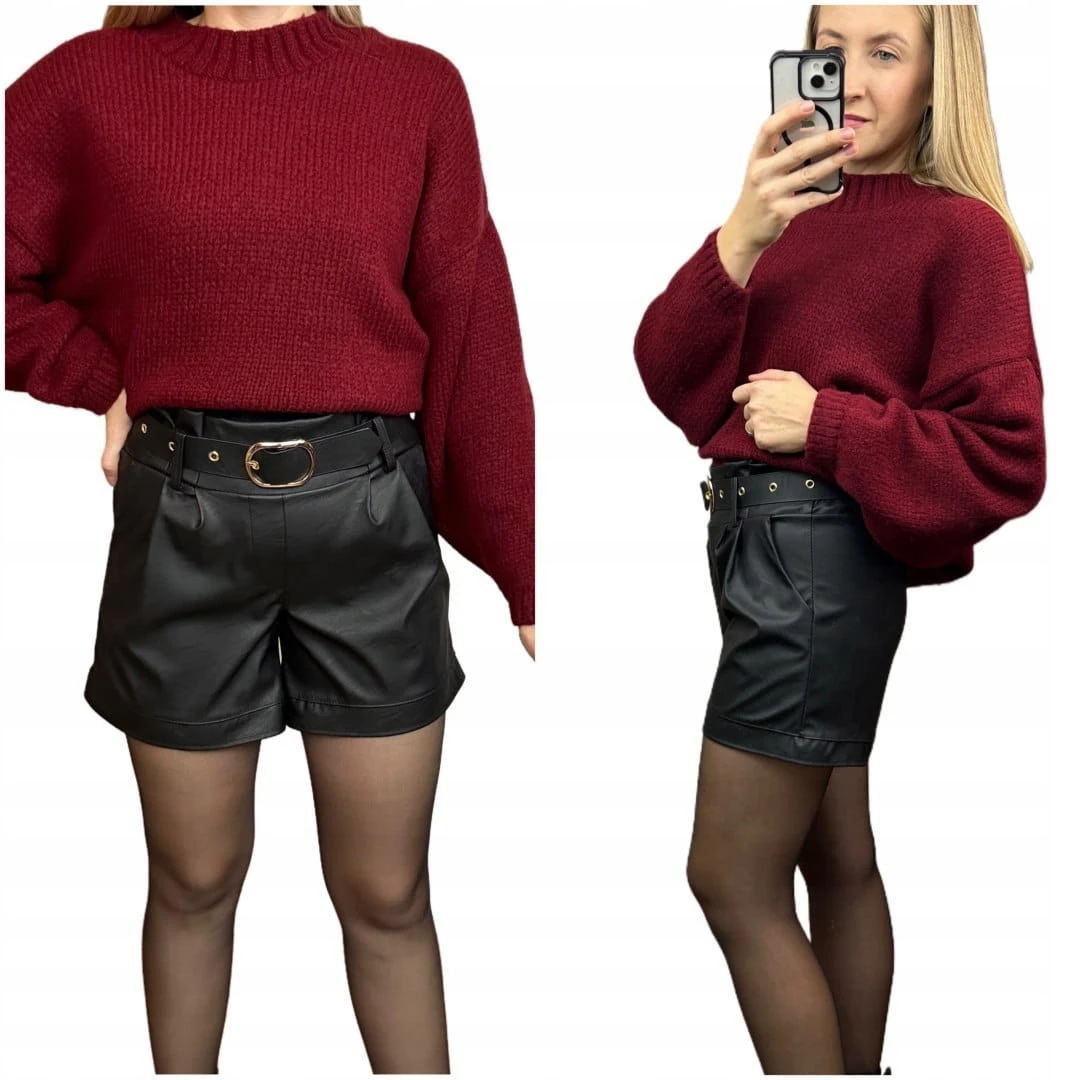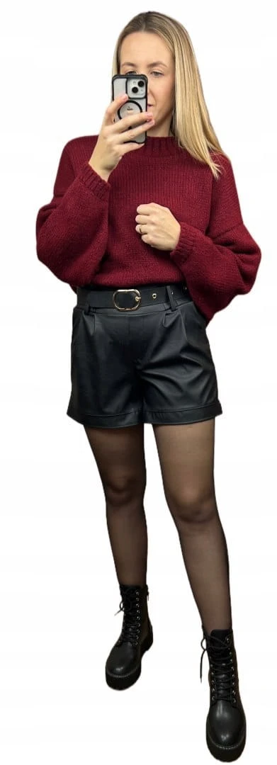 Szorty czarne spodenki wysoki stan skóra ekologiczna pasek klamra S