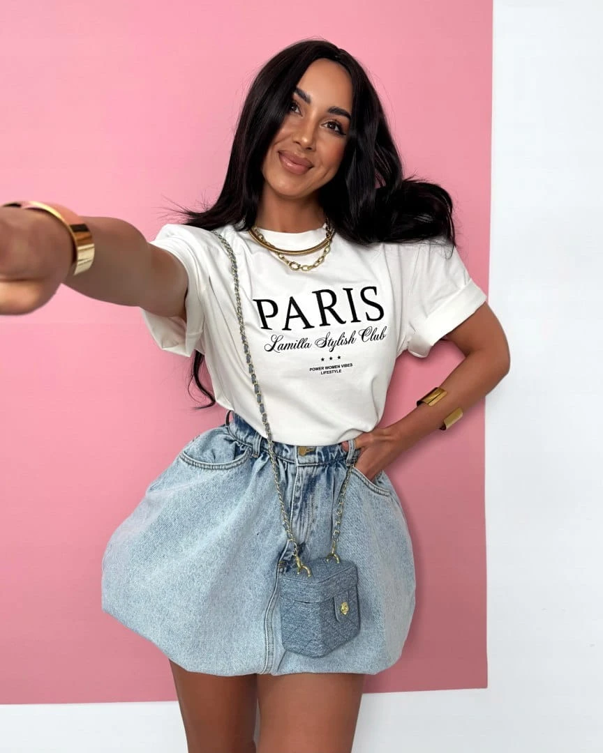 T-shirt biały wiskoza poduszki Paris haft La Milla