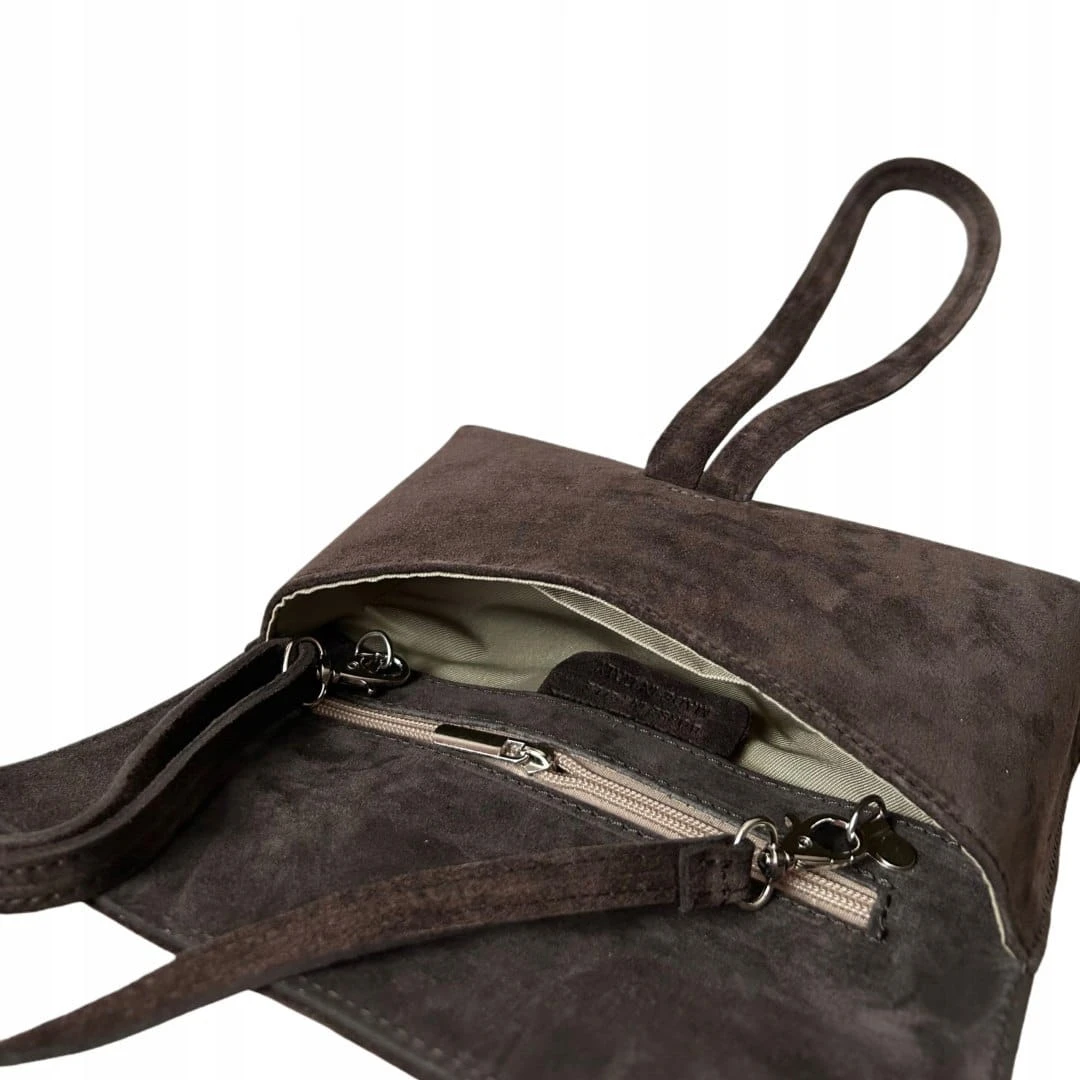 Torebka kopertówka listonoszka pętelka skóra naturalna zamsz Vera Pelle- NODO