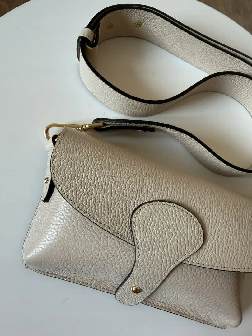 Torebka listonoszka skóra naturalna licowa beżowa crossbody Vera Pelle- MAXI LUXI