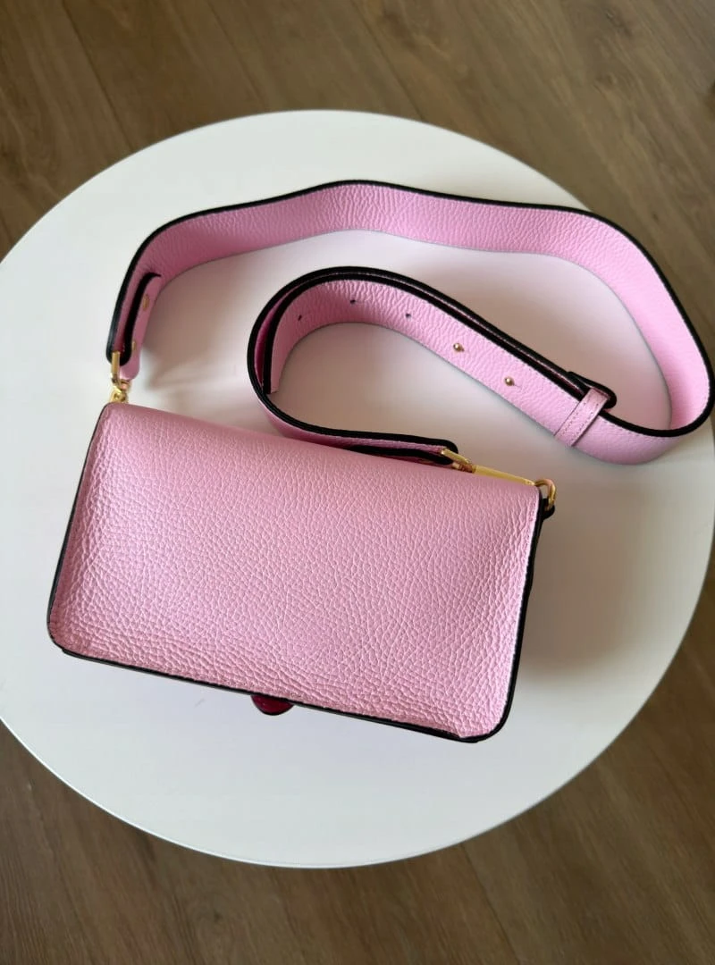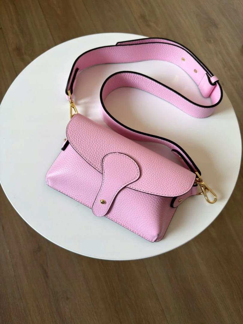 Torebka listonoszka skóra naturalna licowa różowa róż crossbody Vera Pelle- MAXI LUXI