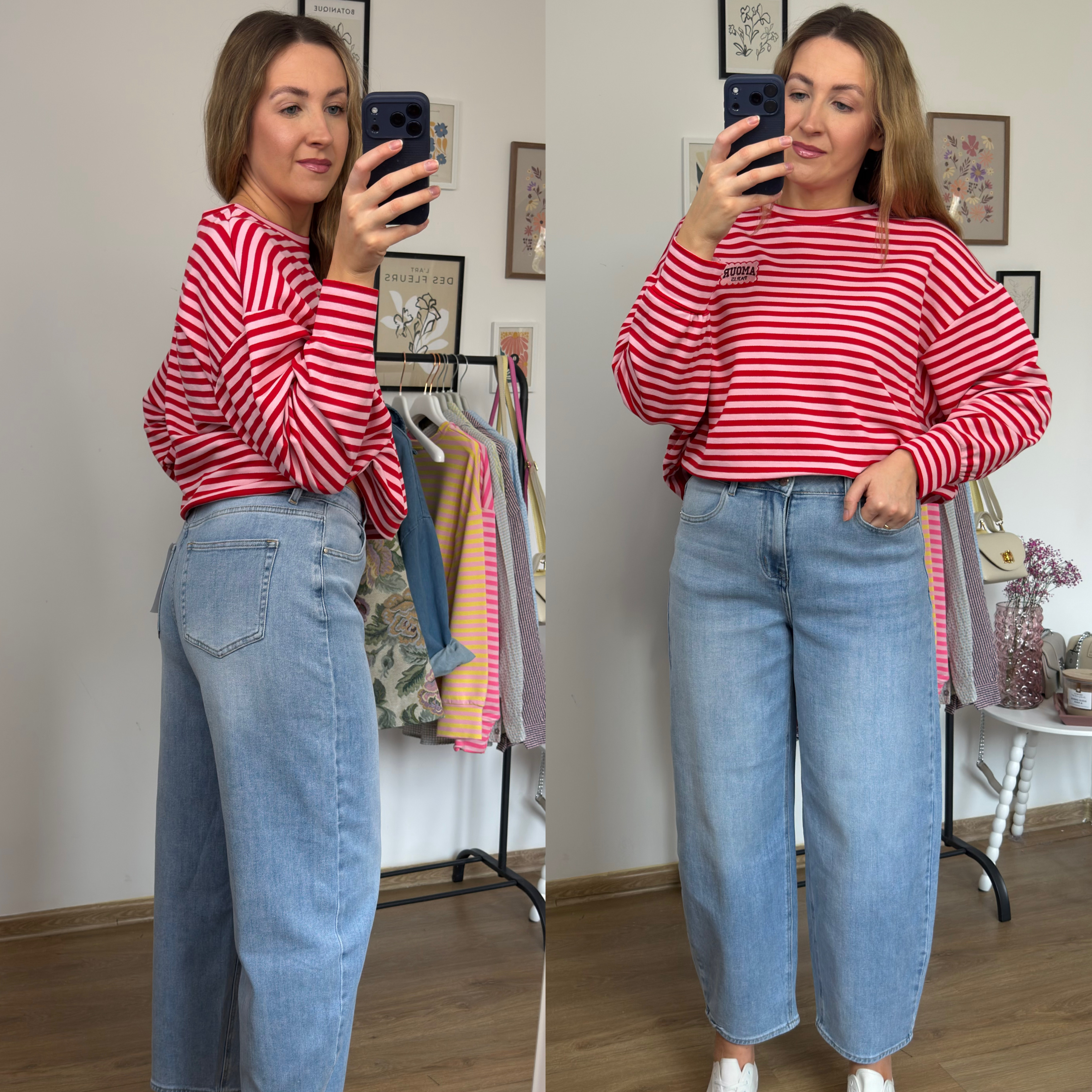 Ponadczasowy fason, który pasuje do wszystkiego. Klasyczne niebieskie jeansy balloon pięknie podkreślają talię, a jednocześnie pozostają bardzo wygodne. To model, który z łatwością dopasujesz zarówno do sportowych butów, jak i bardziej kobiecych dodatków.