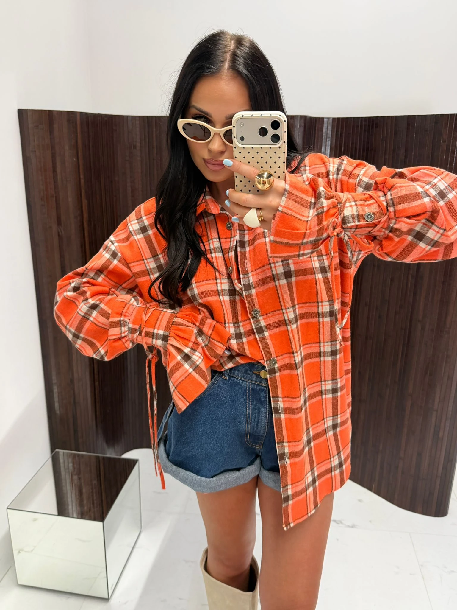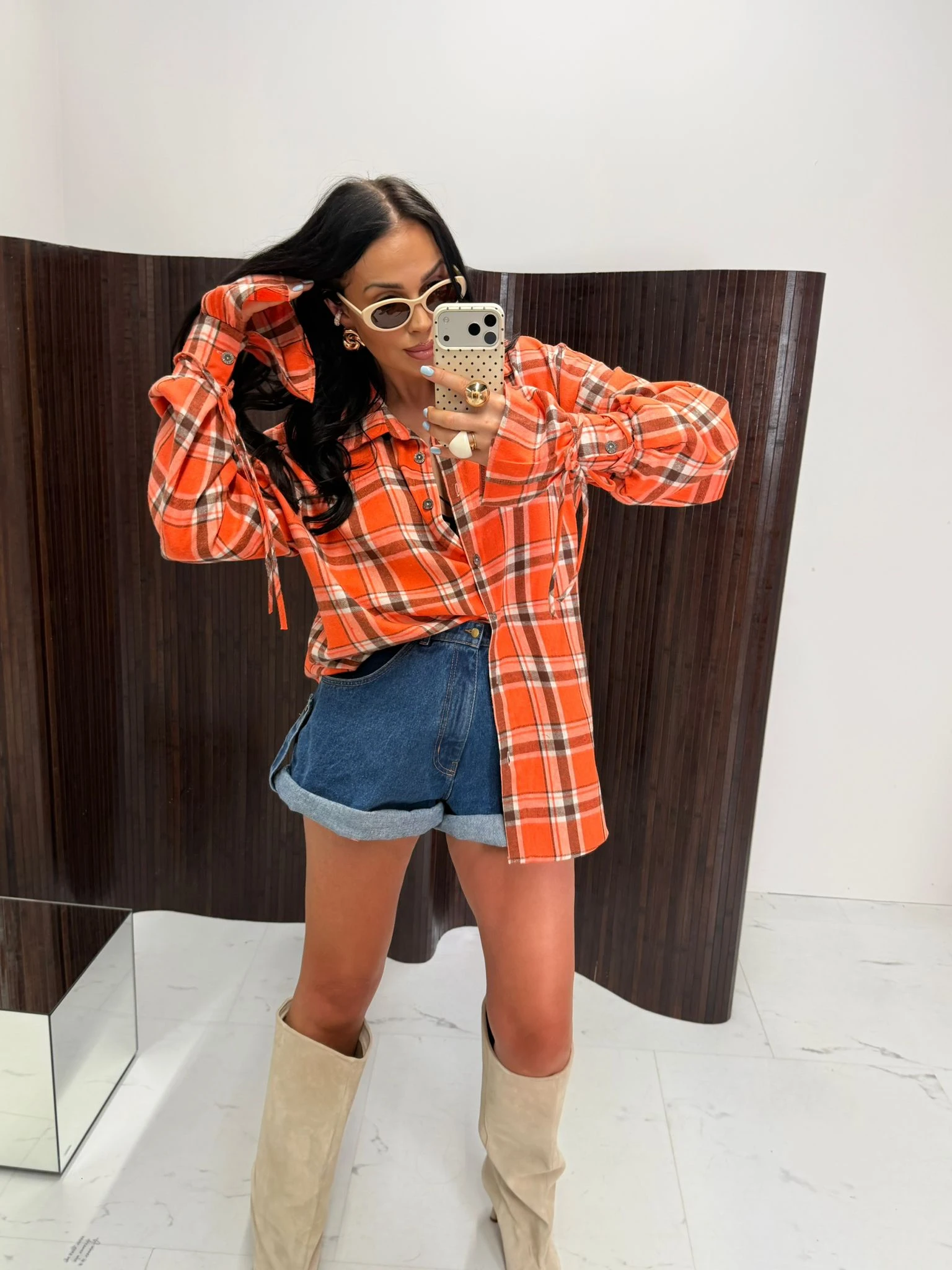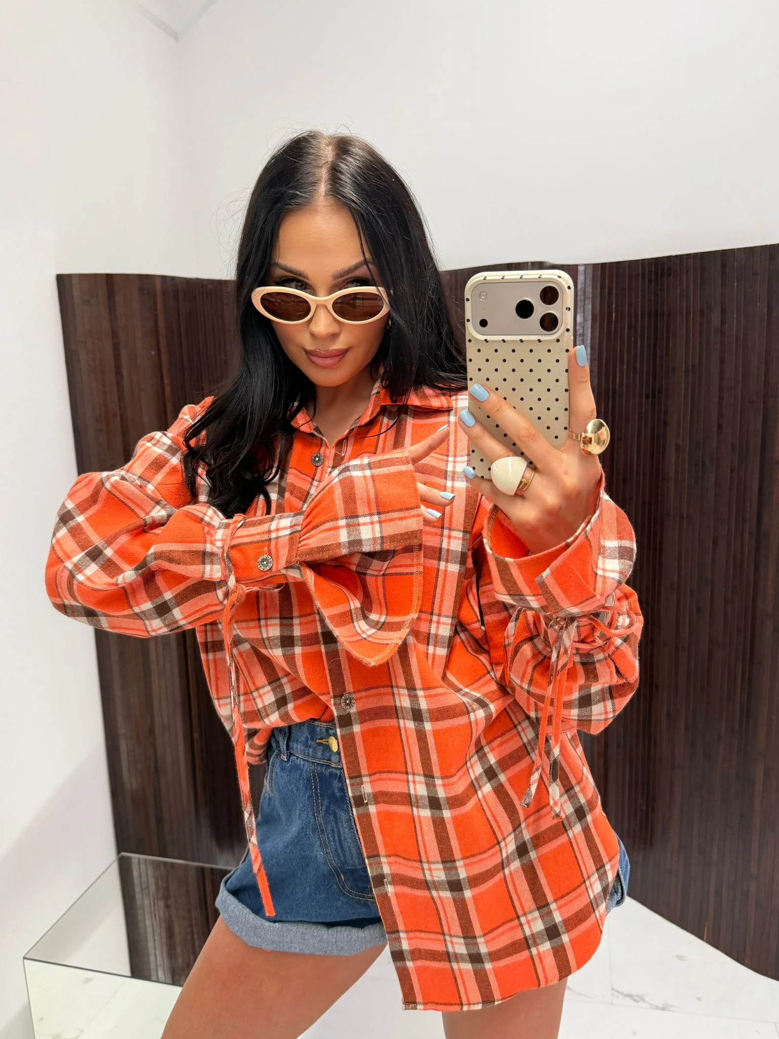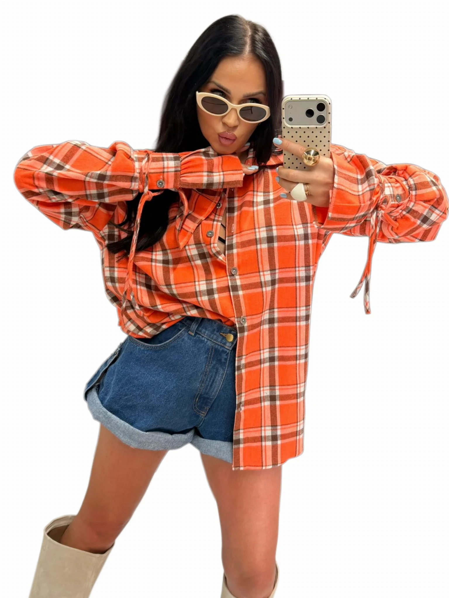 Pomarańczowo-biała krata nadaje jej świeżego, kobiecego charakteru, a luźniejszy fason sprawia, że świetnie układa się na sylwetce i pasuje do wielu stylizacji. Możesz nosić ją klasycznie lub na luzie jako narzutkę.