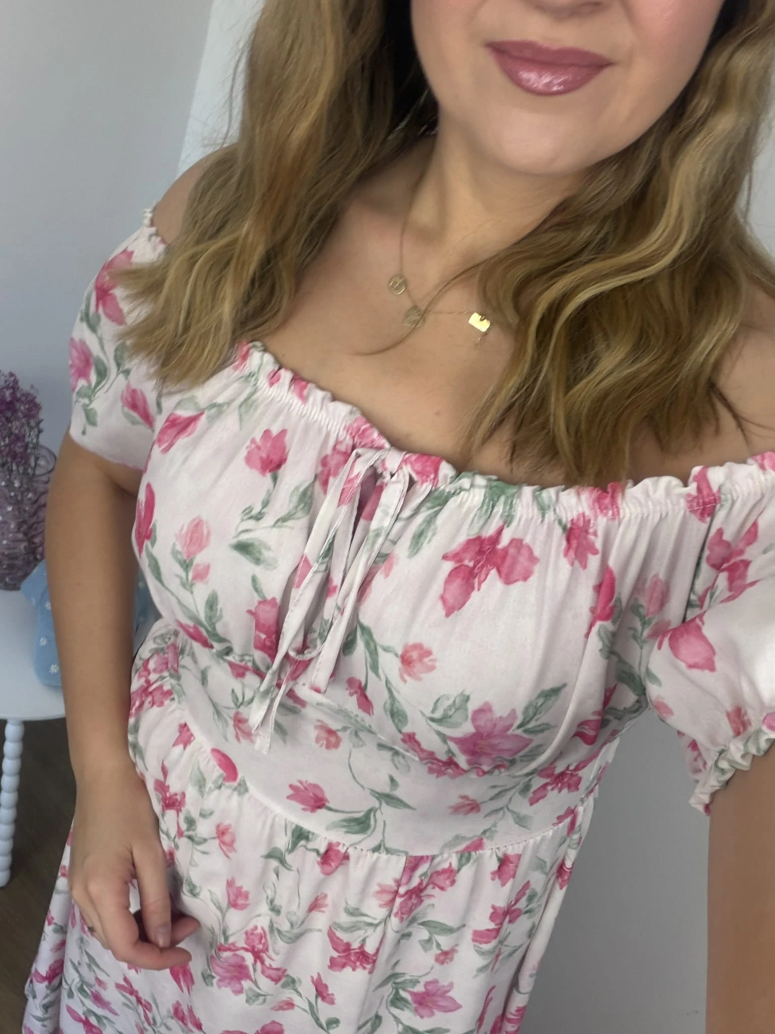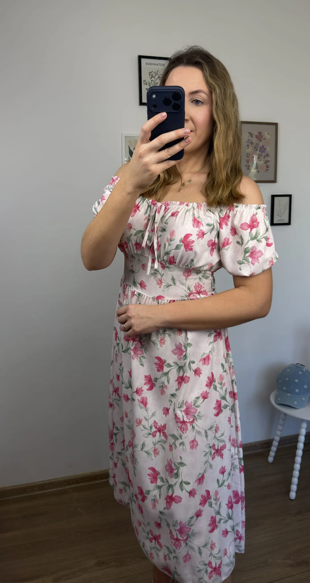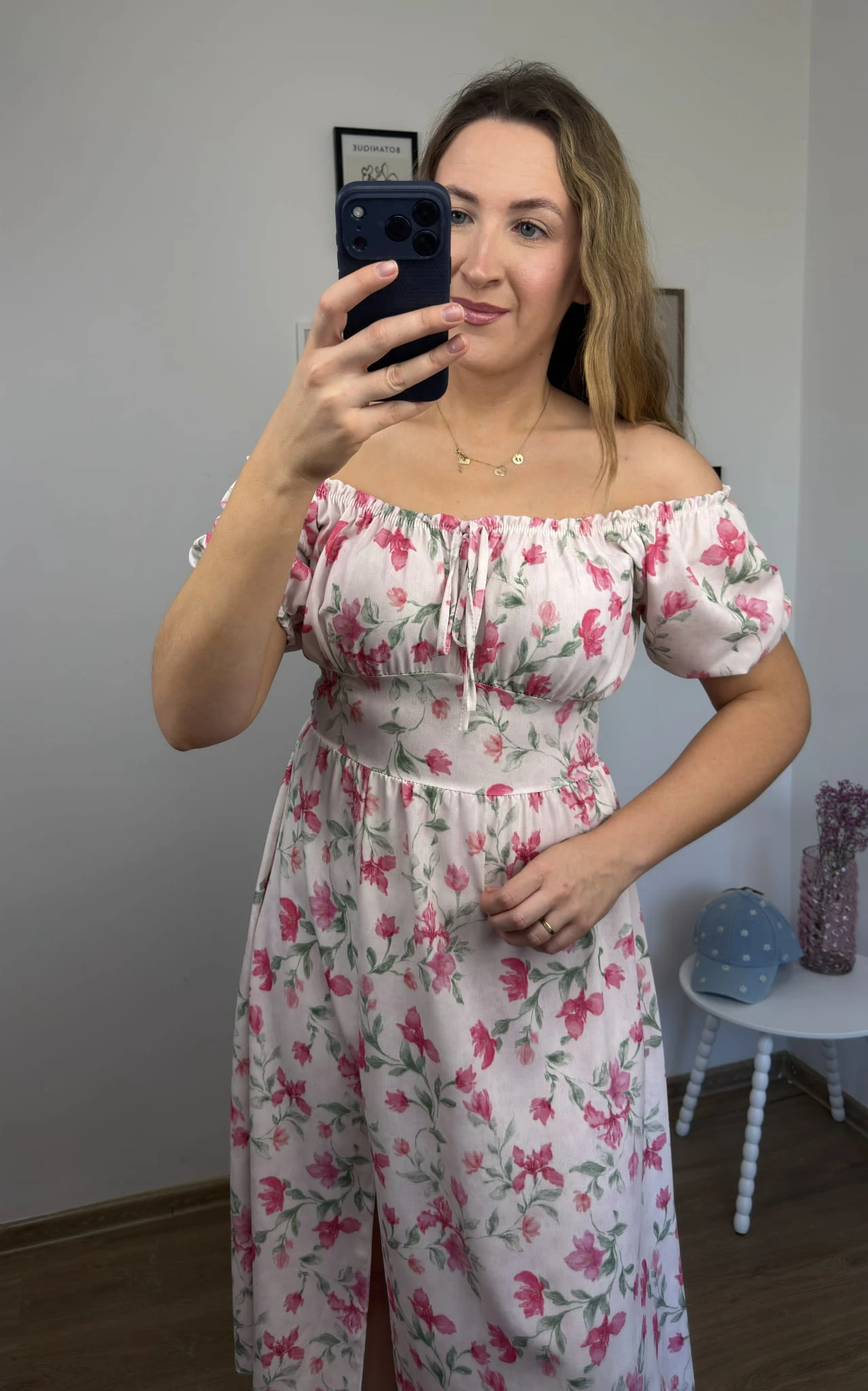 Sukienka FIORELLA midi w różowe kwiaty z rozcięciem – wiskoza, hiszpanka