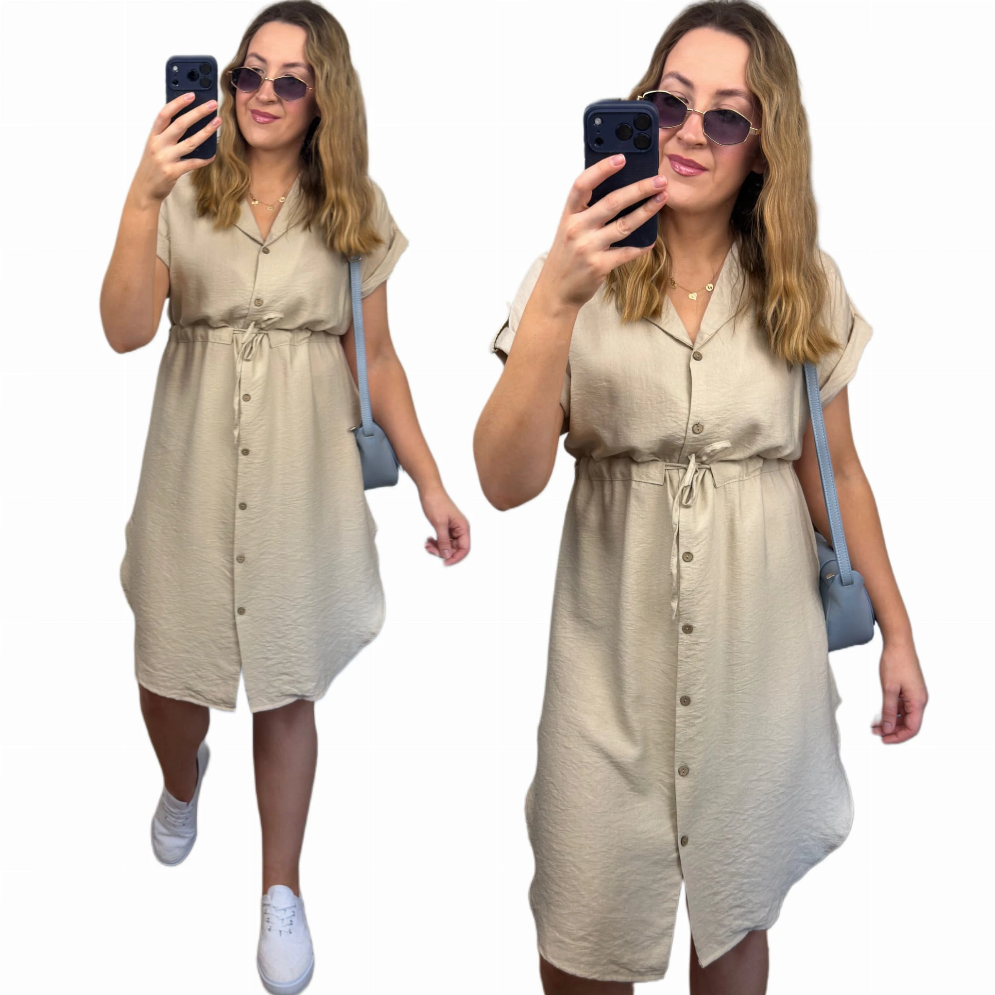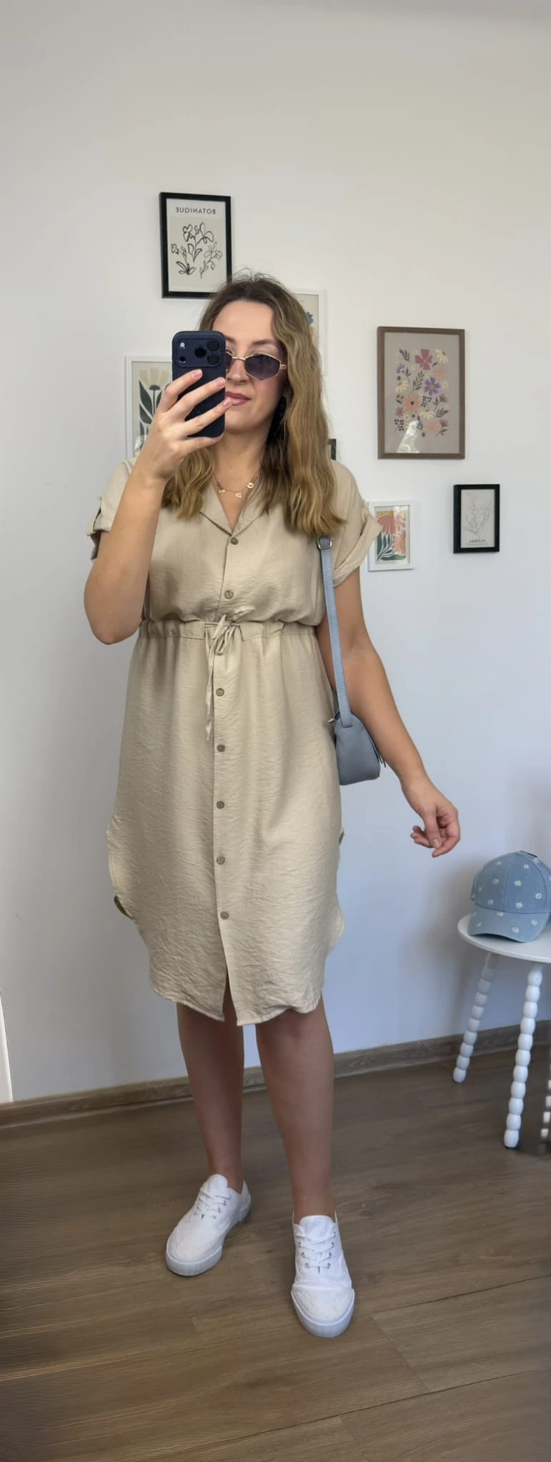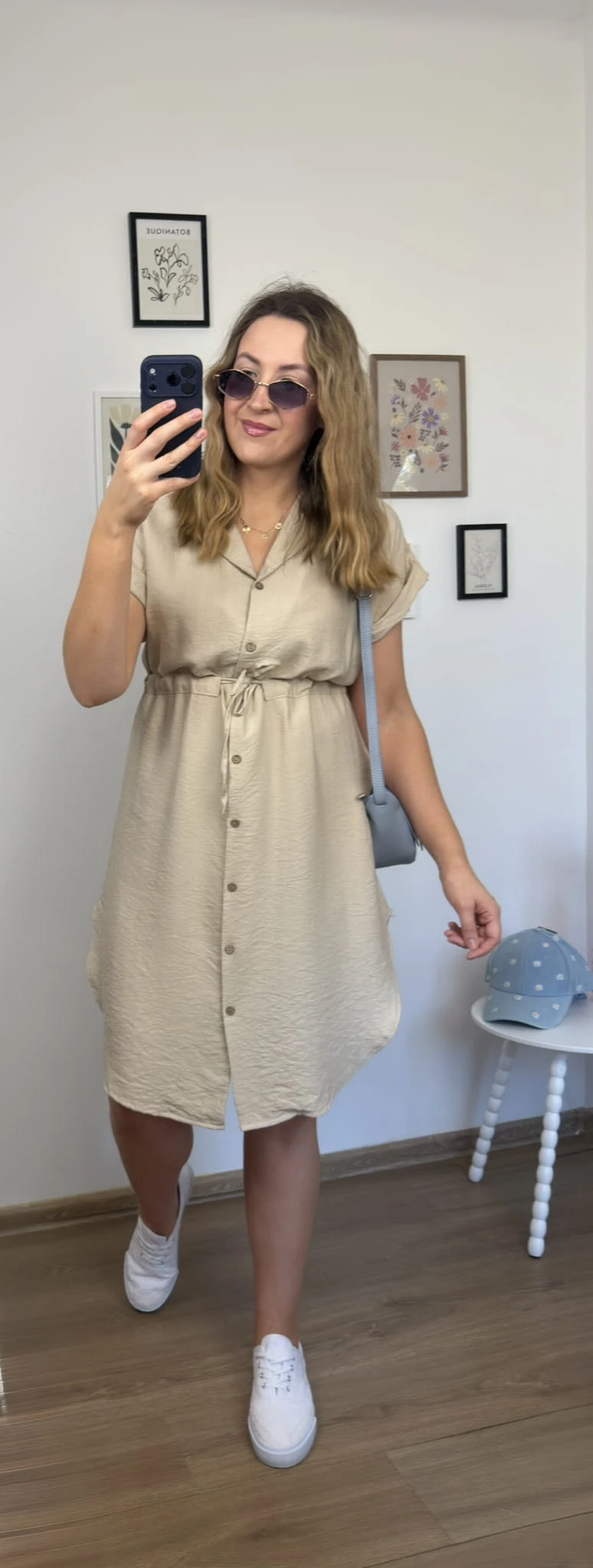 Koszulowa sukienka, która łączy wygodę i styl w jednej formie. Lekka, przewiewna i niezwykle uniwersalna – idealna na co dzień, do pracy, na wyjazd czy letnie spacery.