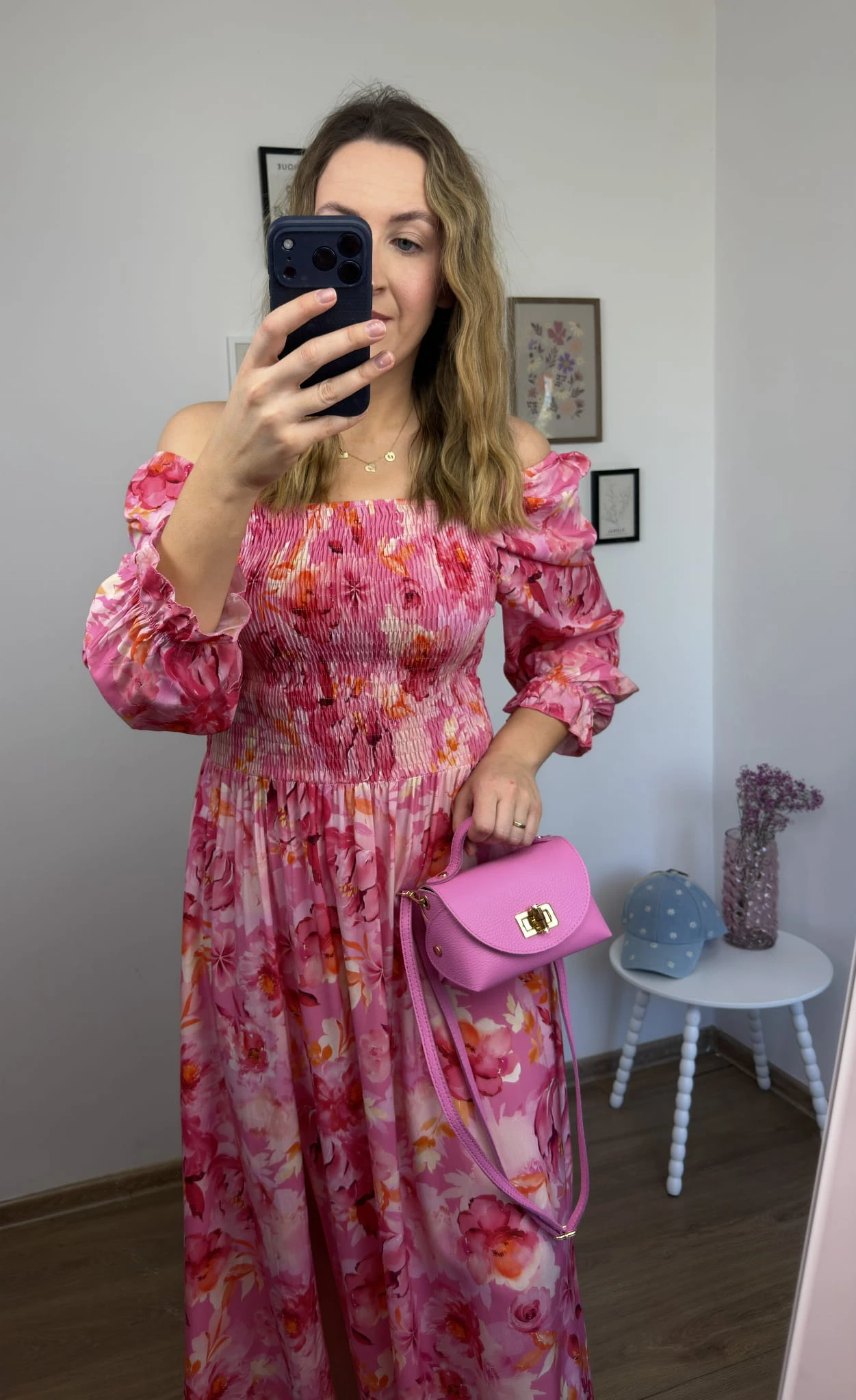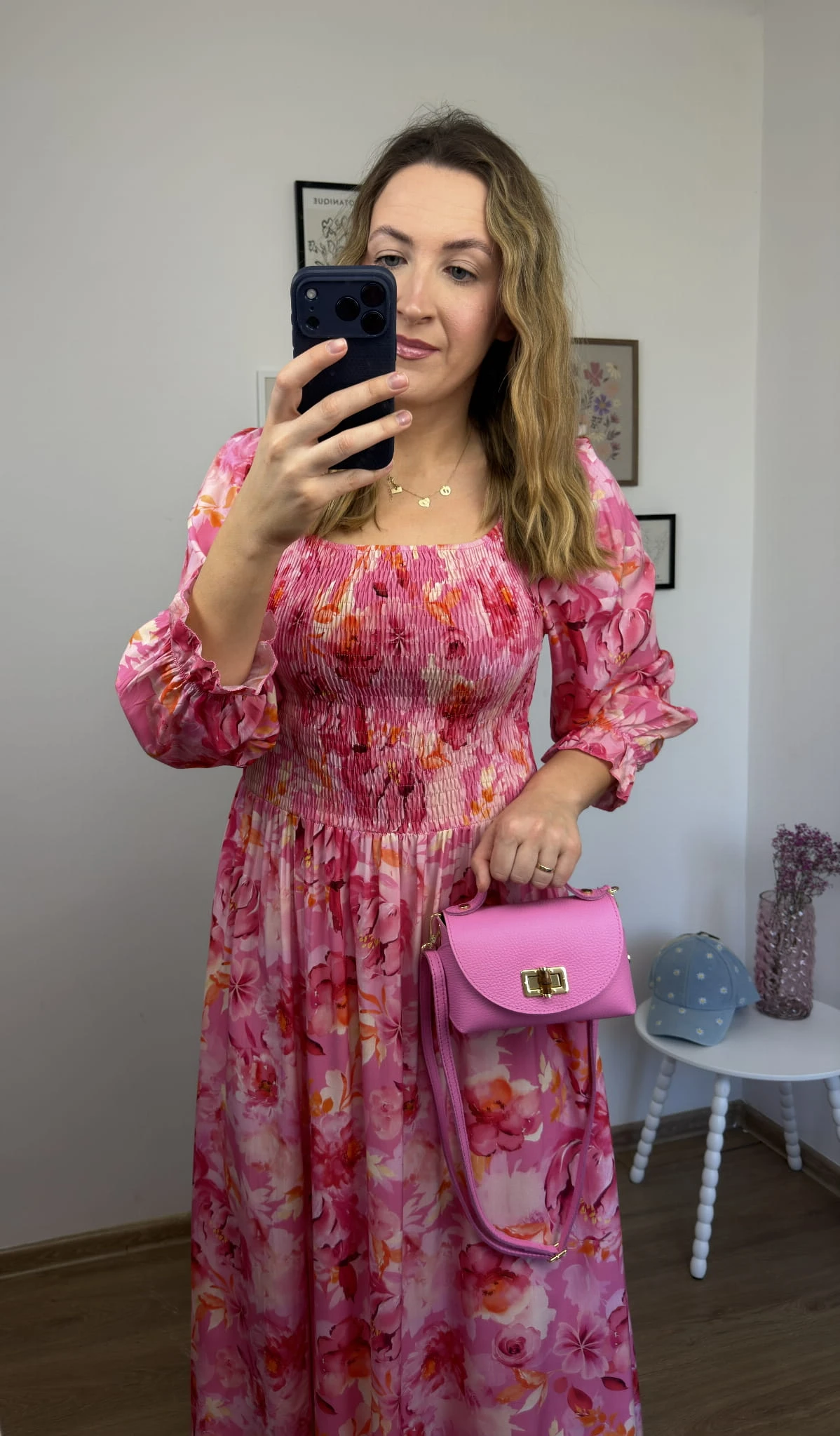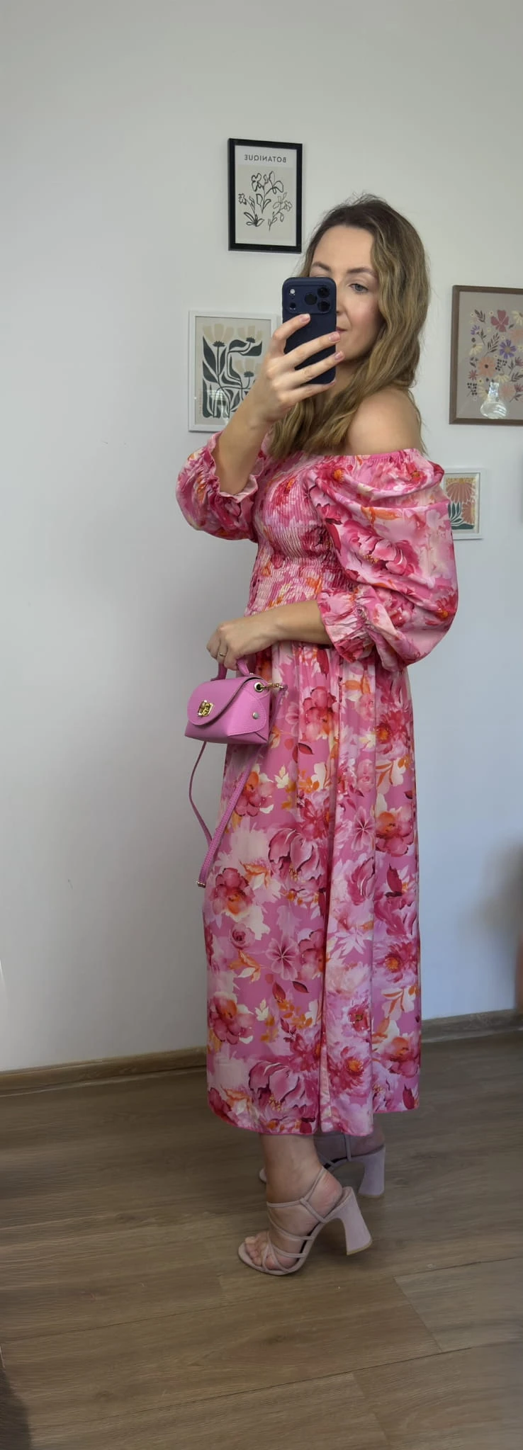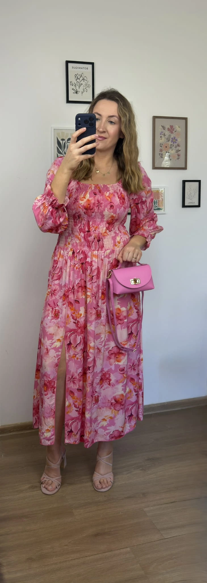 Zwiewna różowa sukienka maxi hiszpanka 100% wiskoza rozcięcie kwiatowy print LORENA