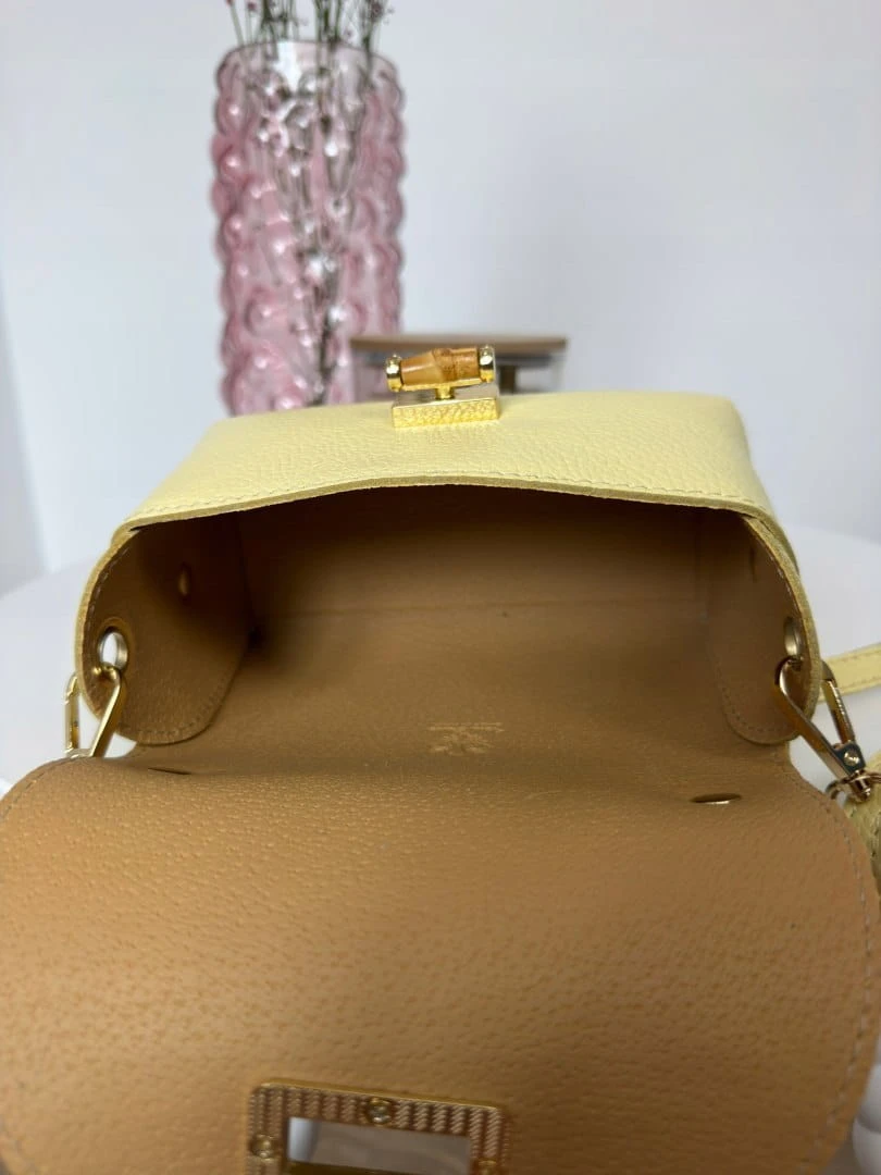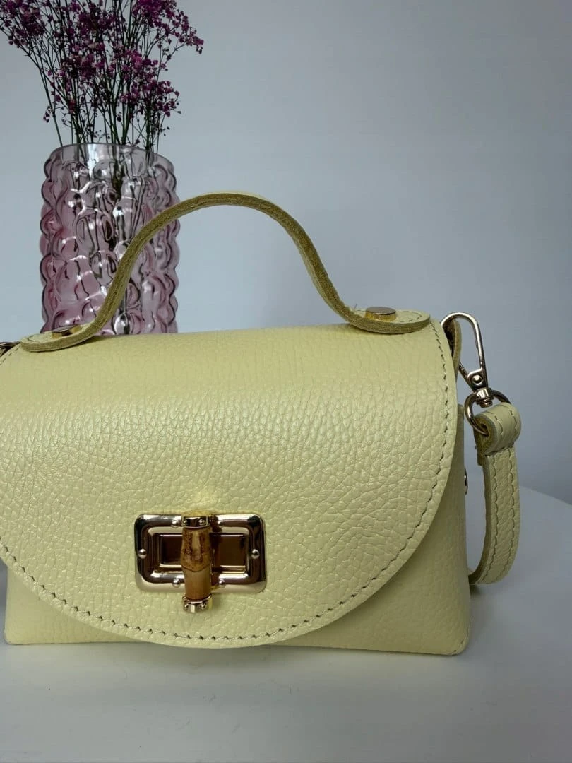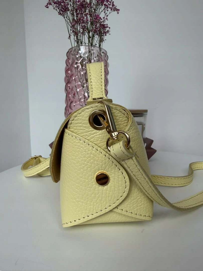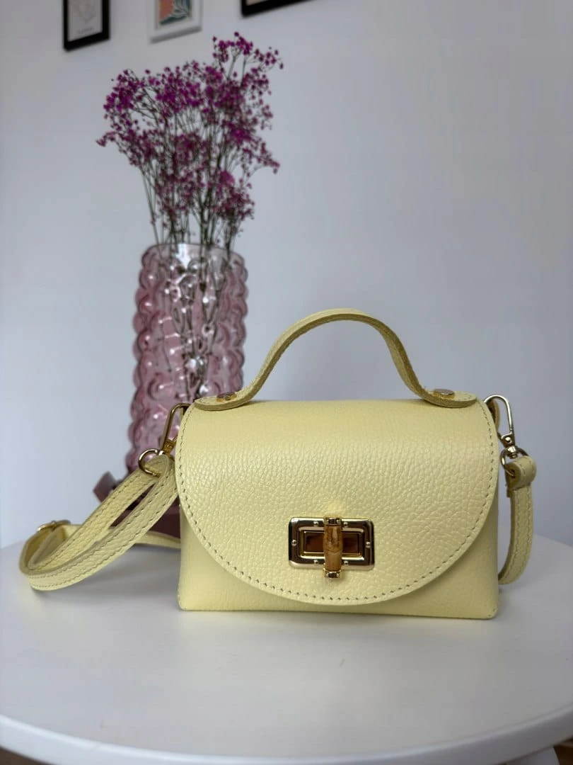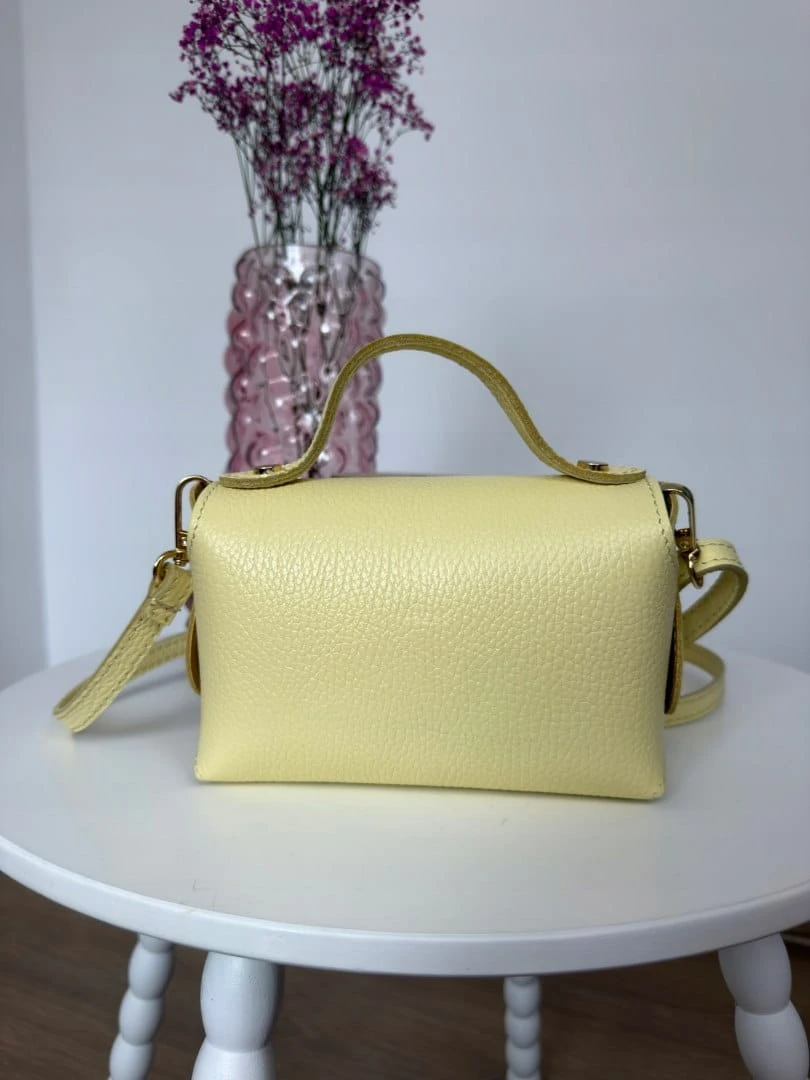 Torebka mała skóra naturalna licowa cytrynowa żółta pasek Vera Pelle- MARZIA