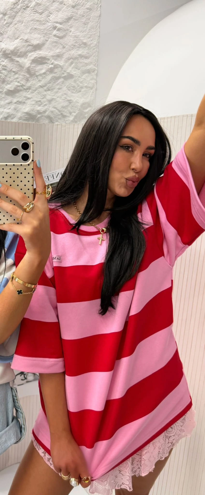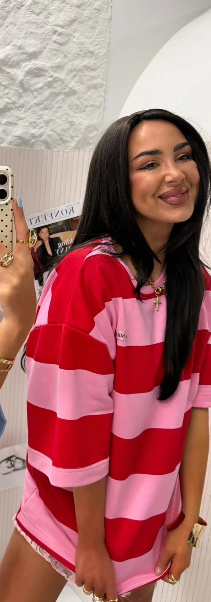T-shirt LA MILLA w pasy różowo-czerwone oversize bawełna